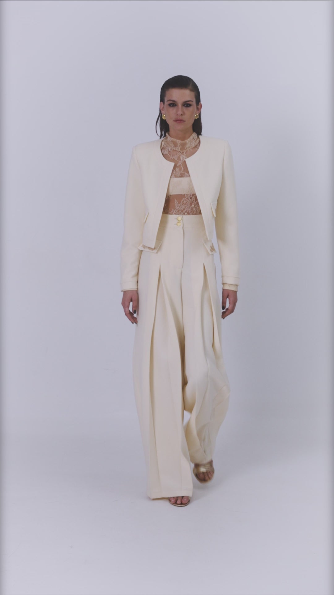 Κοντό σακάκι με κεντημένες λεπτομέρειες, από κρεπ ύφασμα.
