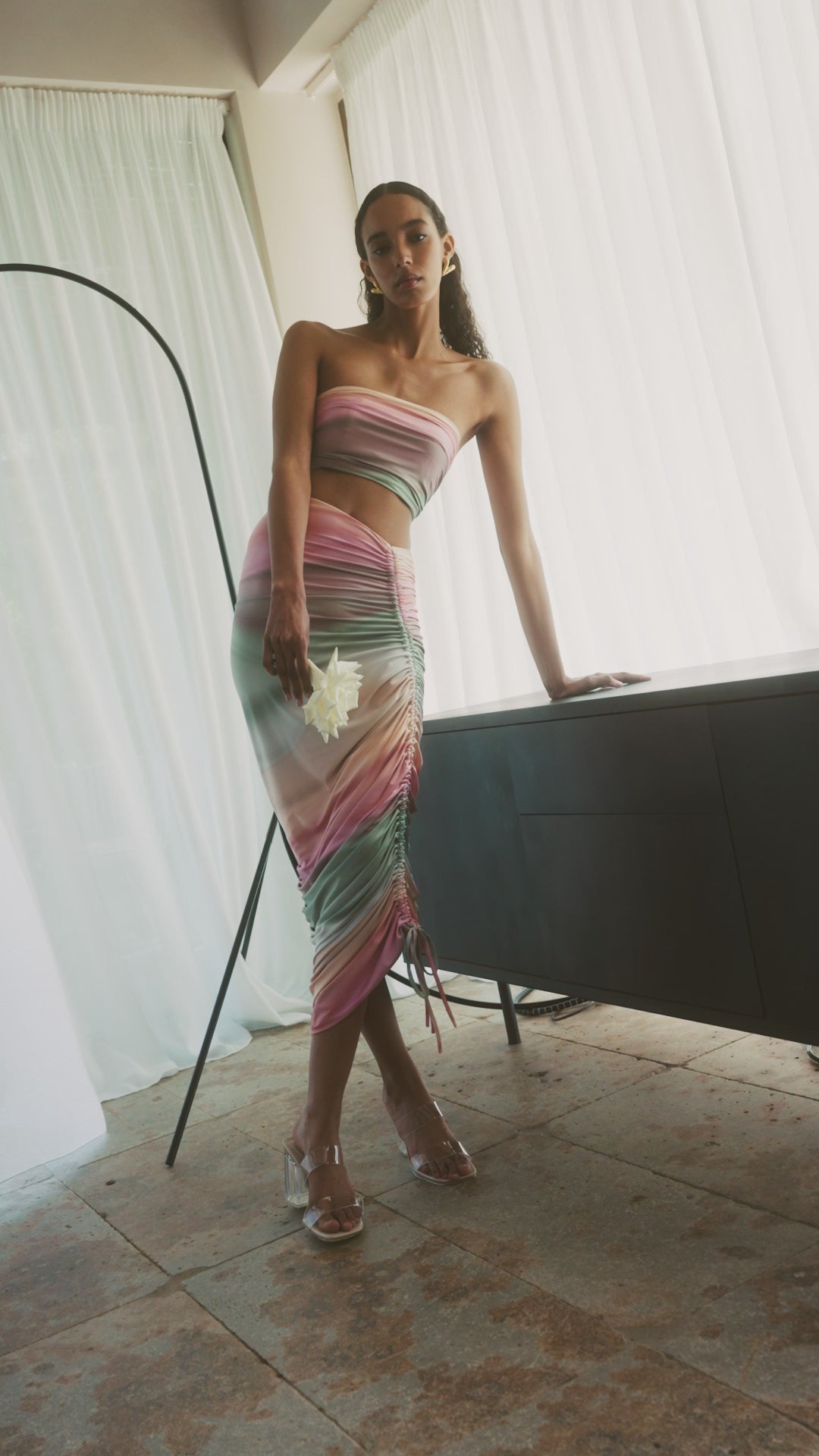 100% σχεδιασμένο και κατασκευασμένο στην Ελλάδα. Discover the elegant set of skirt and top in a dégradé color, crafted from luxurious double jersey fabric. This set offers unique comfort and style, perfect for any occasion. The double jersey fabric hugs the body, while the modern dégradé color adds a striking touch to your look. Elevate your wardrobe with this impressive set that combines elegance with comfort