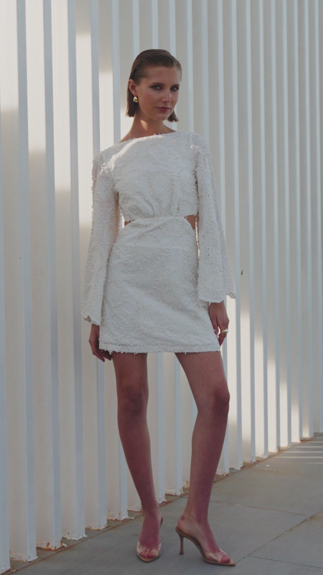 Κοντό φόρεμα με ανοίγματα στην μέση, κατασκευασμένο με κεντητό ύφασμα από 100% βαμβάκι.