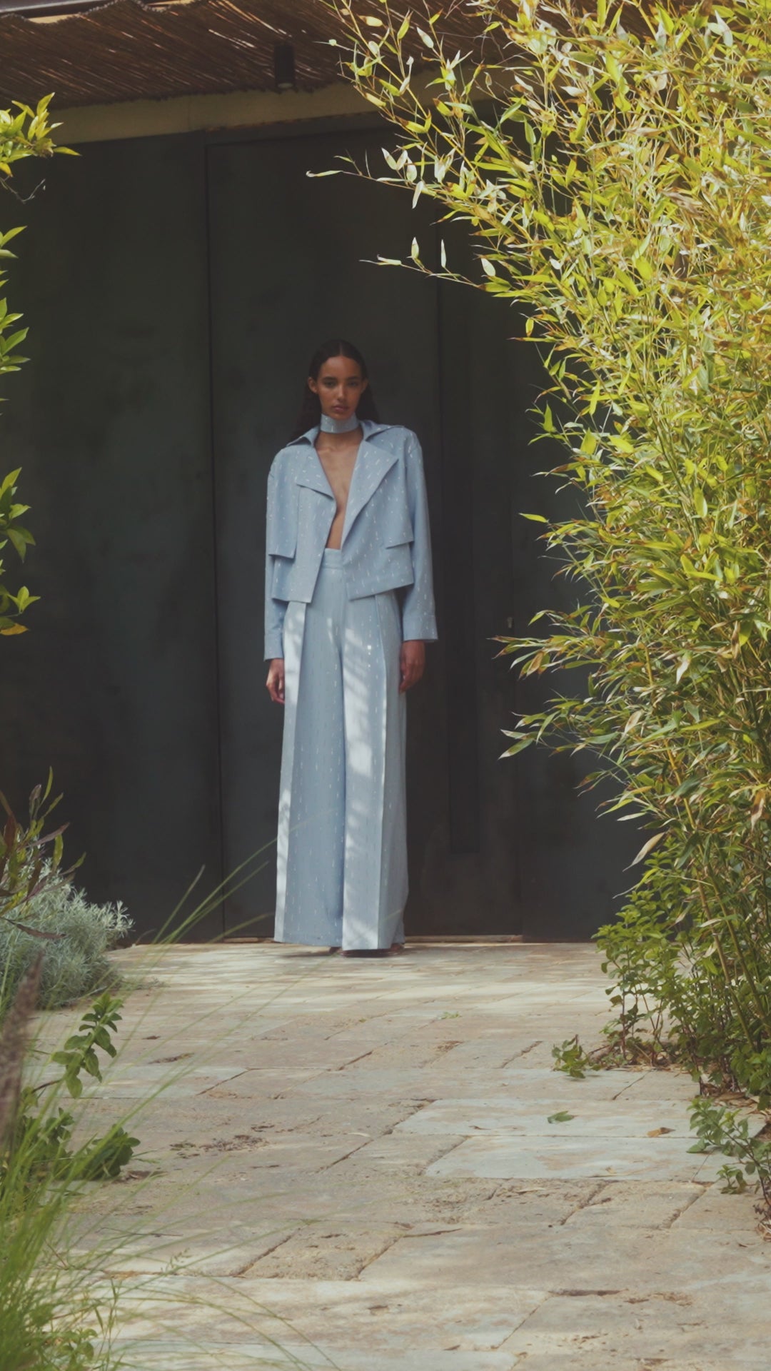 100% σχεδιασμένο και κατασκευασμένο στην Ελλάδα. Explore ultimate comfort and elegance with our oversized jacket in a modern sky blue hue. Crafted from crepe fabric, this jacket offers a lightweight and airy feel. The crystals embellishing the jacket add sparkle and sophistication, making it perfect to stand out on any occasion