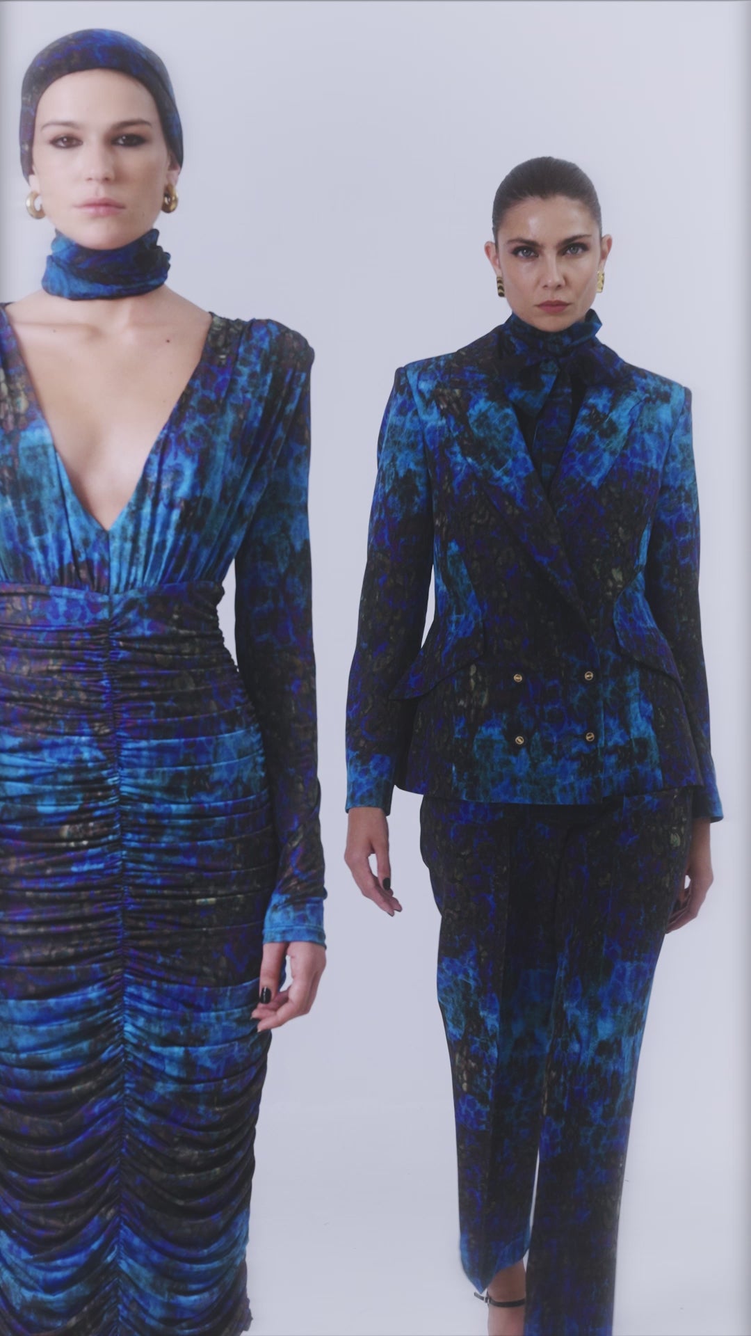 Midi φόρεμα με σούρες, από διπλό ύφασμα ζέρσεϊ.