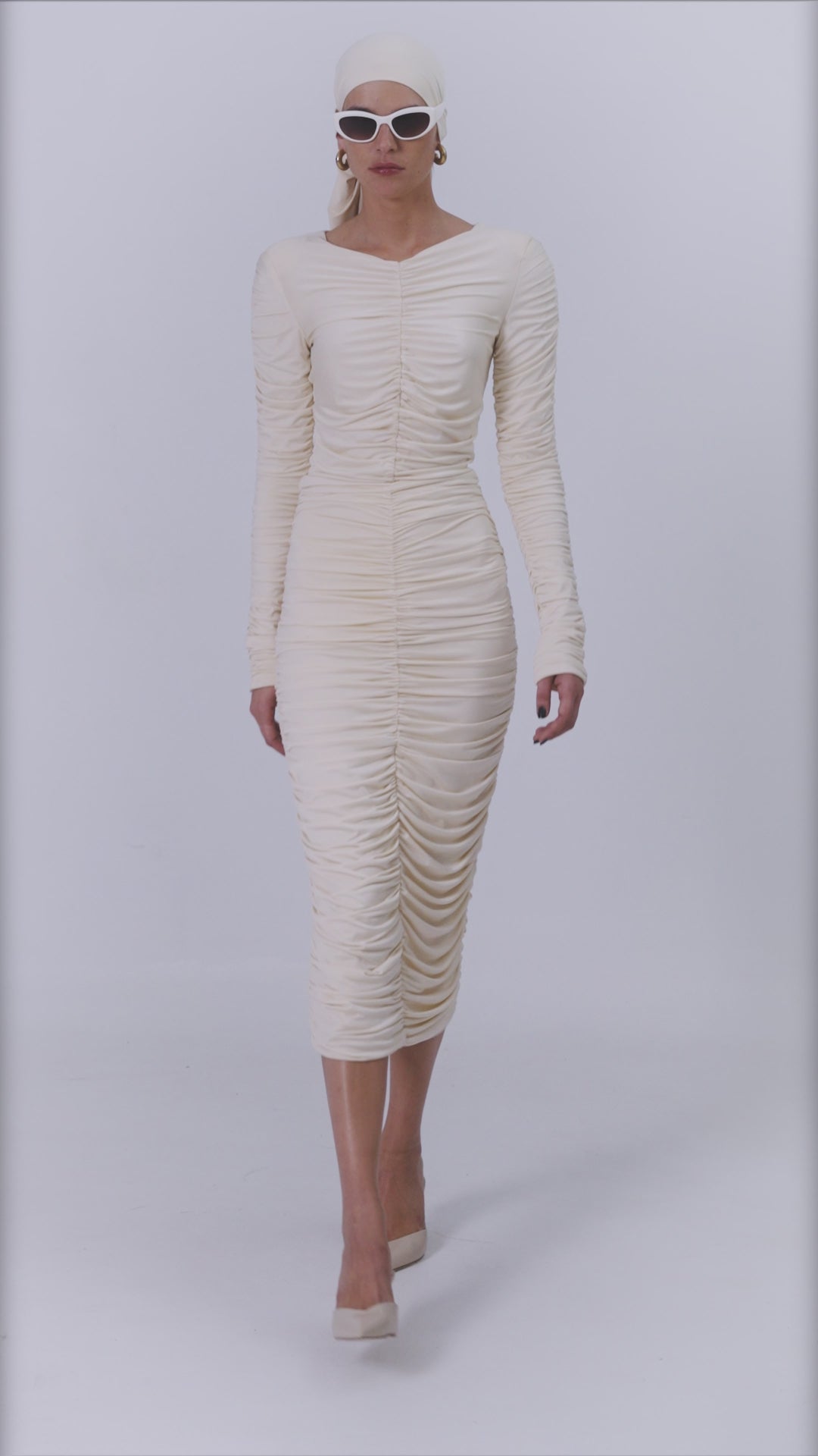 Midi φούστα σε στενή γραμμή με σούρες, από διπλό ύφασμα ζέρσεϊ.