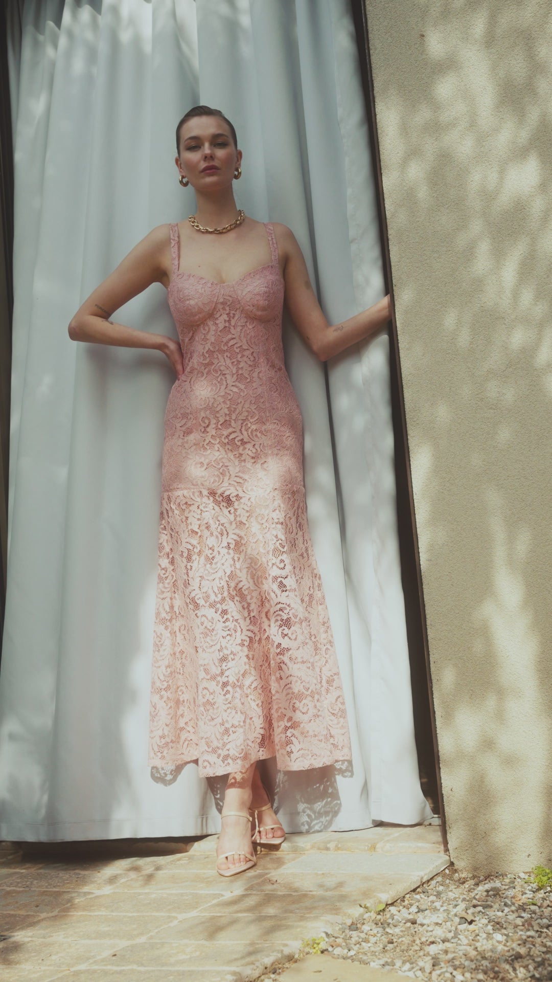 Αναδείξτε την κομψότητα και τη θηλυκότητά σας με αυτό το εκθαμβωτικό φόρεμα από δαντέλα σε απαλό ροζ χρώμα. Το φόρεμα αγκαλιάζει τη σιλουέτα σας, προσδίδοντας ρομαντισμό και πολυτέλεια. Η υψηλής ποιότητας δαντέλα και οι εκλεπτυσμένες λεπτομέρειες εντυπωσιάζουν σε κάθε περίσταση, από γάμους μέχρι ρομαντικές βραδιές.