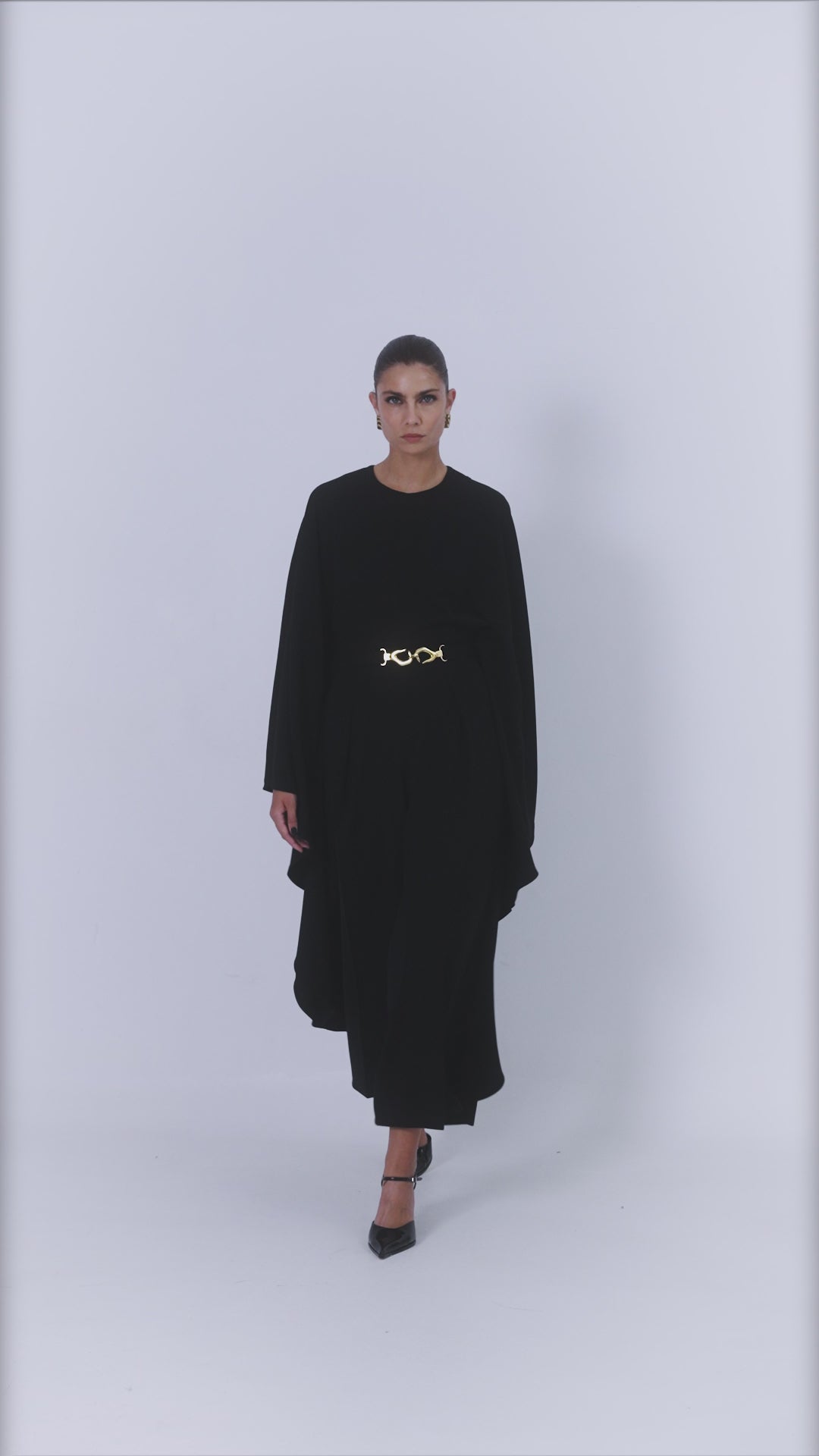 Ολόσωμη φόρμα με ανοιχτή πλάτη, δένει με ζώνη.