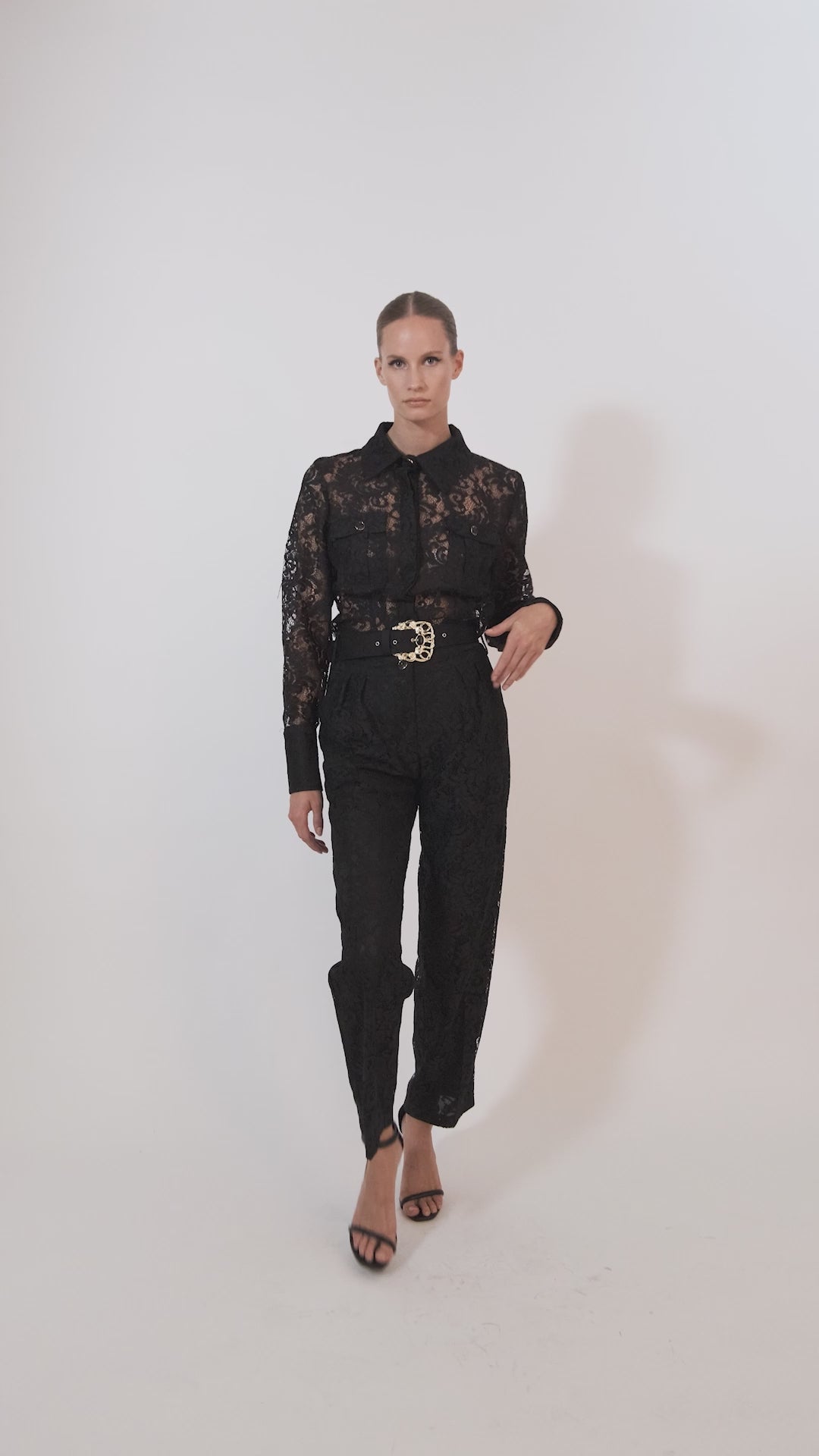 If you want to make an impression, these high-waisted trousers are for you. There are made mainly of lace with inner lining. It has two front buttons. One-of-a-kind and elegant.