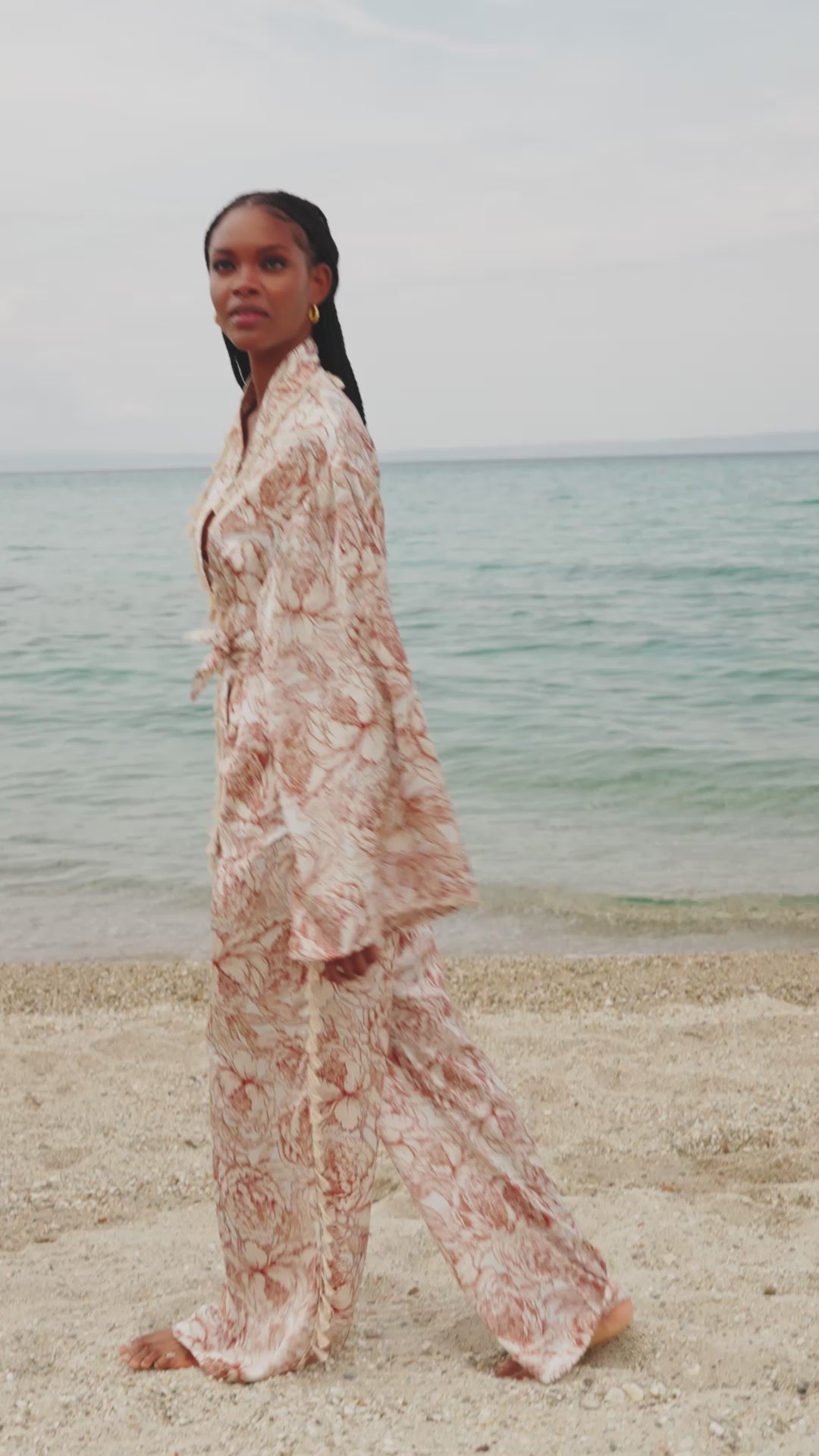 Κimono made from floral-pattern silk touch fabric.